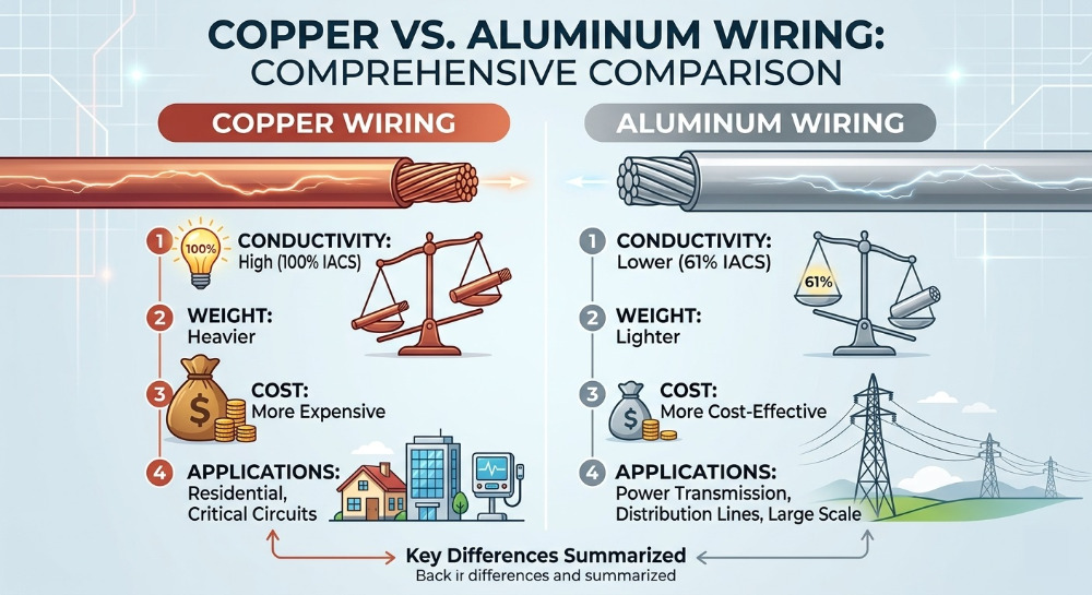 Copper vs aluminum wiring is a common comparison in electrical design because both materials are widely used, but they serve different needs. Copper is known for higher conductivity and compact sizing, while aluminum is lighter and more cost-effective for many large-scale applications. This guide explains the pros and cons of copper wiring and aluminum wiring so readers can choose the right option based on performance, budget, and installation requirements.