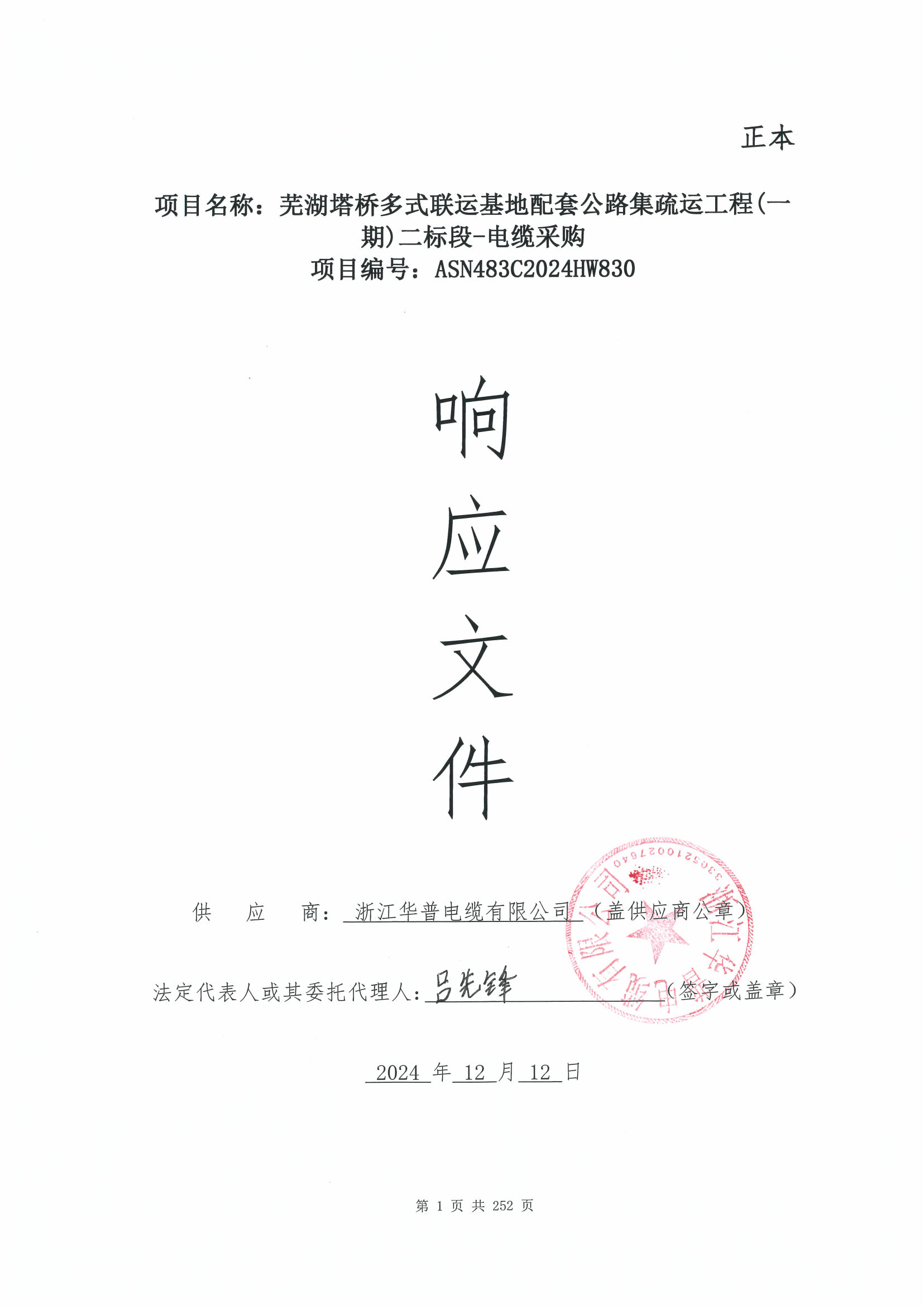 (Winning Contract) Wuhu Taqiao Multimodal Transport Base Supporting Highway Collection and Distribution Project (Phase I) Section 2- Cable Procurement - Competitive Negotiation Document