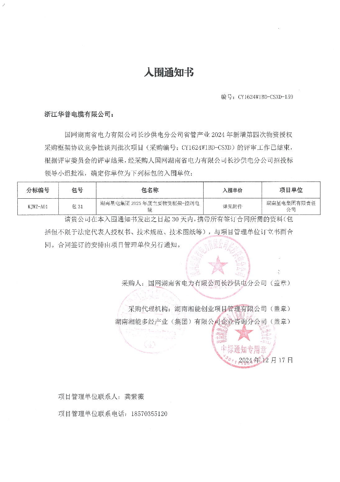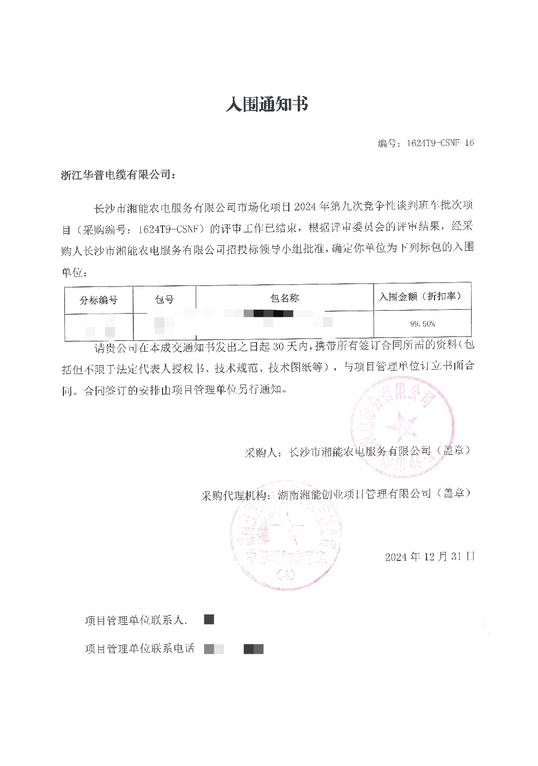 (Bid Winning Notice) State Grid Hunan Electric Power Co., Ltd. Changsha Power Supply Branch Provincial Management Industry 2024 New Fourth Material Authorization Procurement Framework Agreement Competitive Negotiation Batch