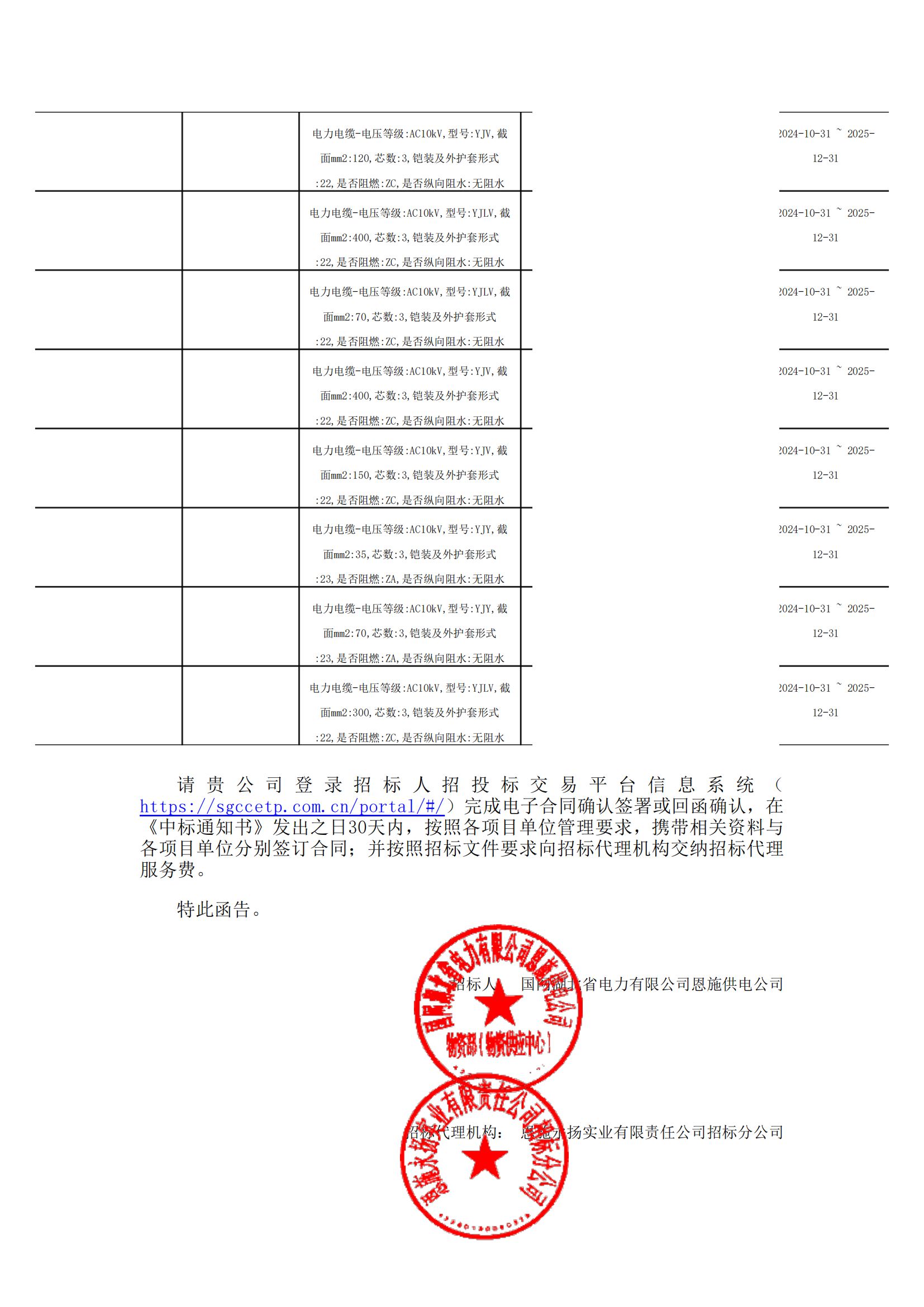 (Notification of Award) State Grid Hubei Enshi Power Supply Company's 2024 Provincial Management Industry Secondary Material Authorization Framework Agreement Public Bidding and Procurement