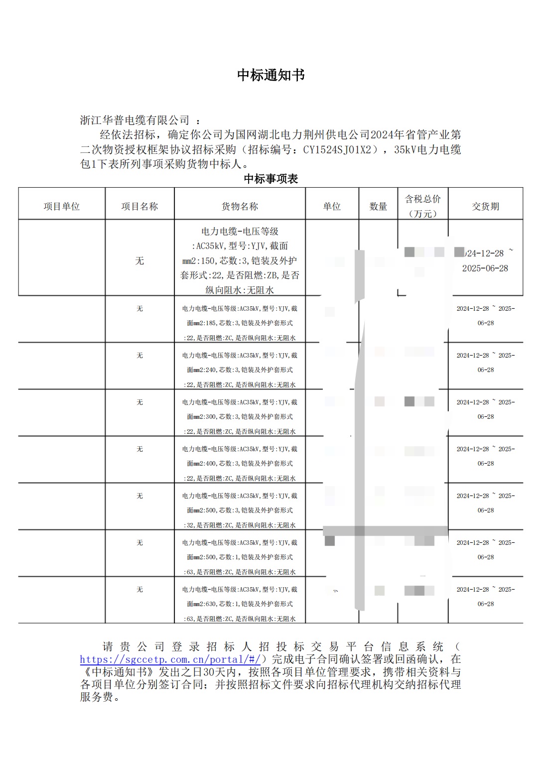 (Bid Winning Notice) State Grid Hubei Electric Power Jingzhou Power Supply Company's 2024 Provincial Management Industry Second Material Authorization Framework Agreement Bidding and Procurement